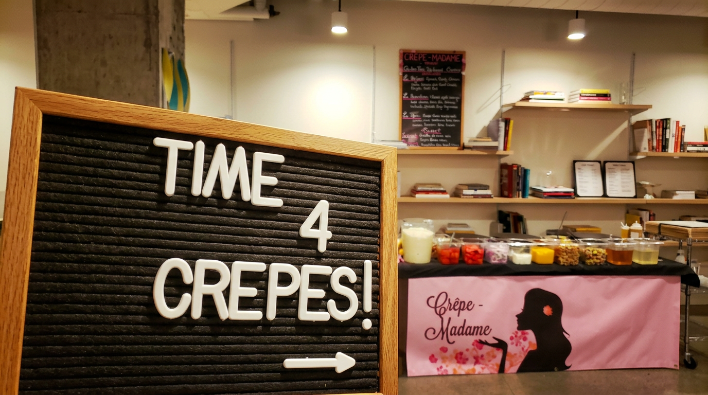 Our team sets up an elegant crêpe station at your venue — fully equipped and ready to go.